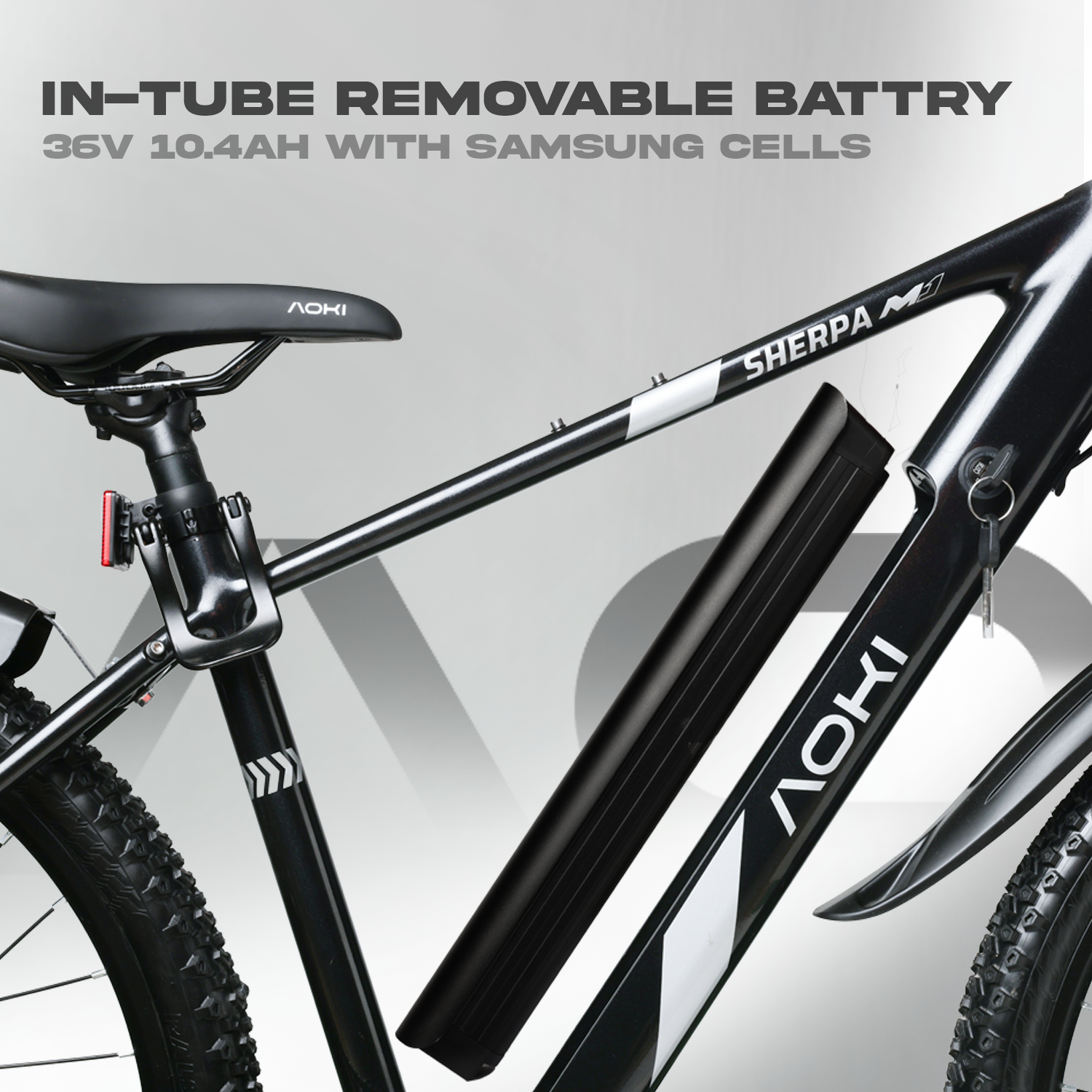 36V 10.4AH Li Ion(Samsung Cells) Removable, Lock Secured In Tube Battery
